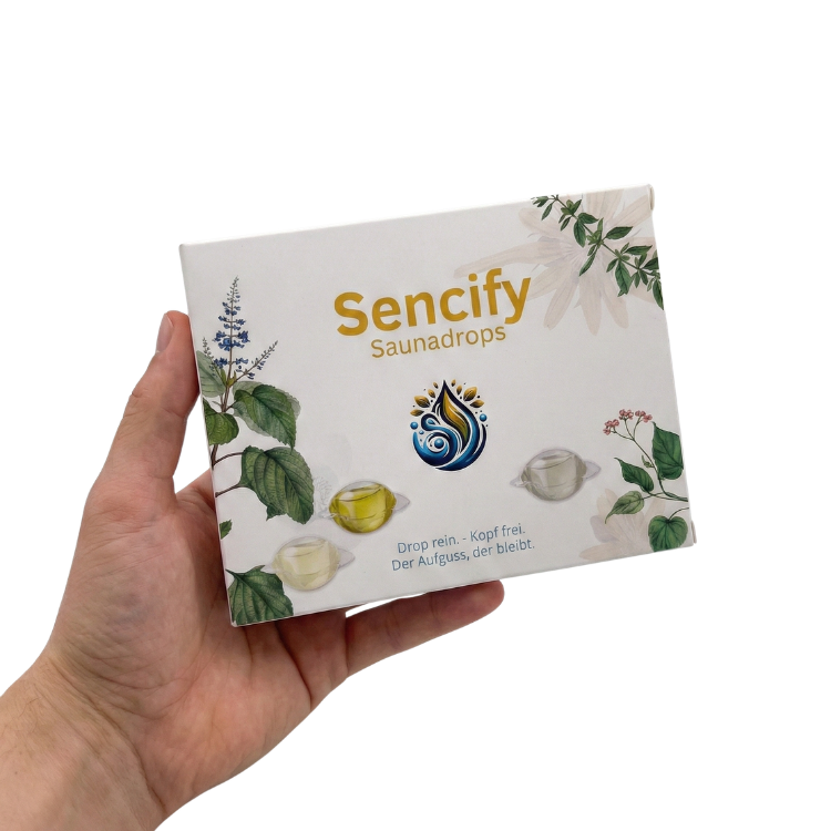 Ich habe dieses Problem gelöst. Nach Jahren des Experimentierens habe ich die Saunadrops entwickelt. Kleine Pods mit wasserlöslicher PVA-Folie, die das ätherische Öl sicher verpacken.